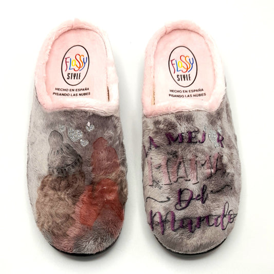 Zapatillas de casa mujer FLOSSY 26-283 La mejor MAMÁ del MUNDO ROSA