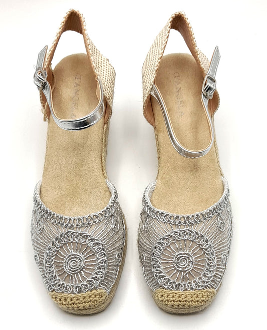 CUÑA YUTE BORDADA D´ANGELA DHA28253 PLATA